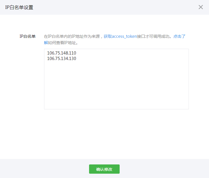 在公众号后台,“基本配置”-“IP白名单”